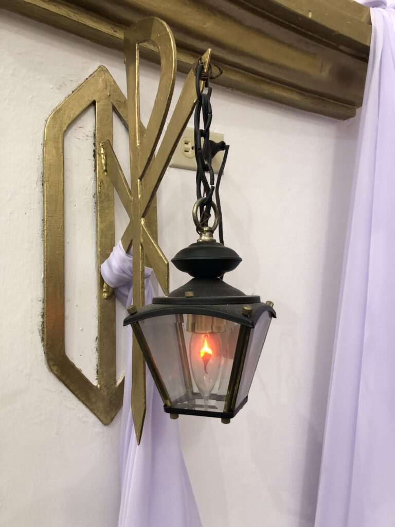 The Sanctuary Lamp in Catholic Churches is lit to alert people that the Blessed Sacrament is present in the building. Although often this lamp has red glass, it does not …